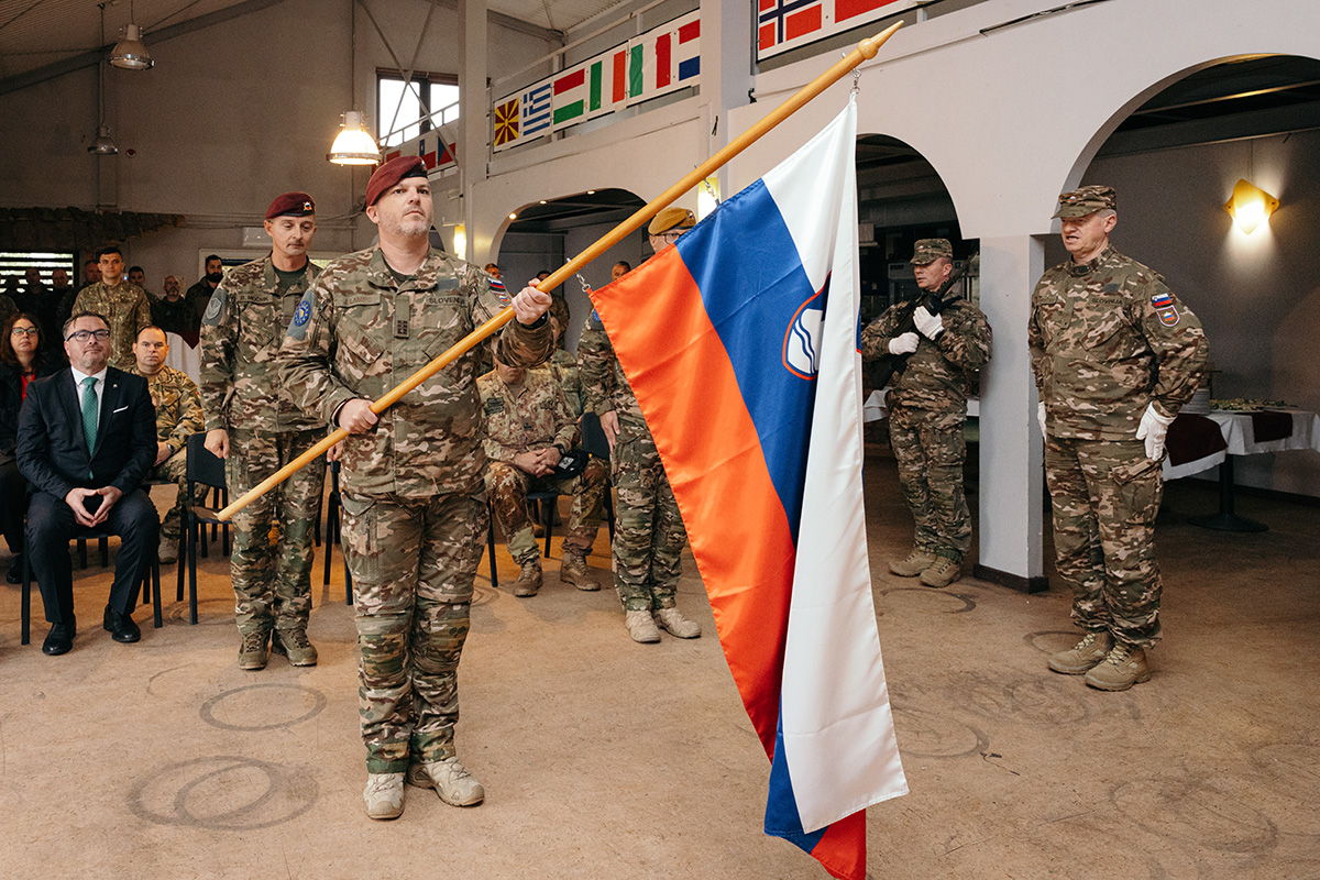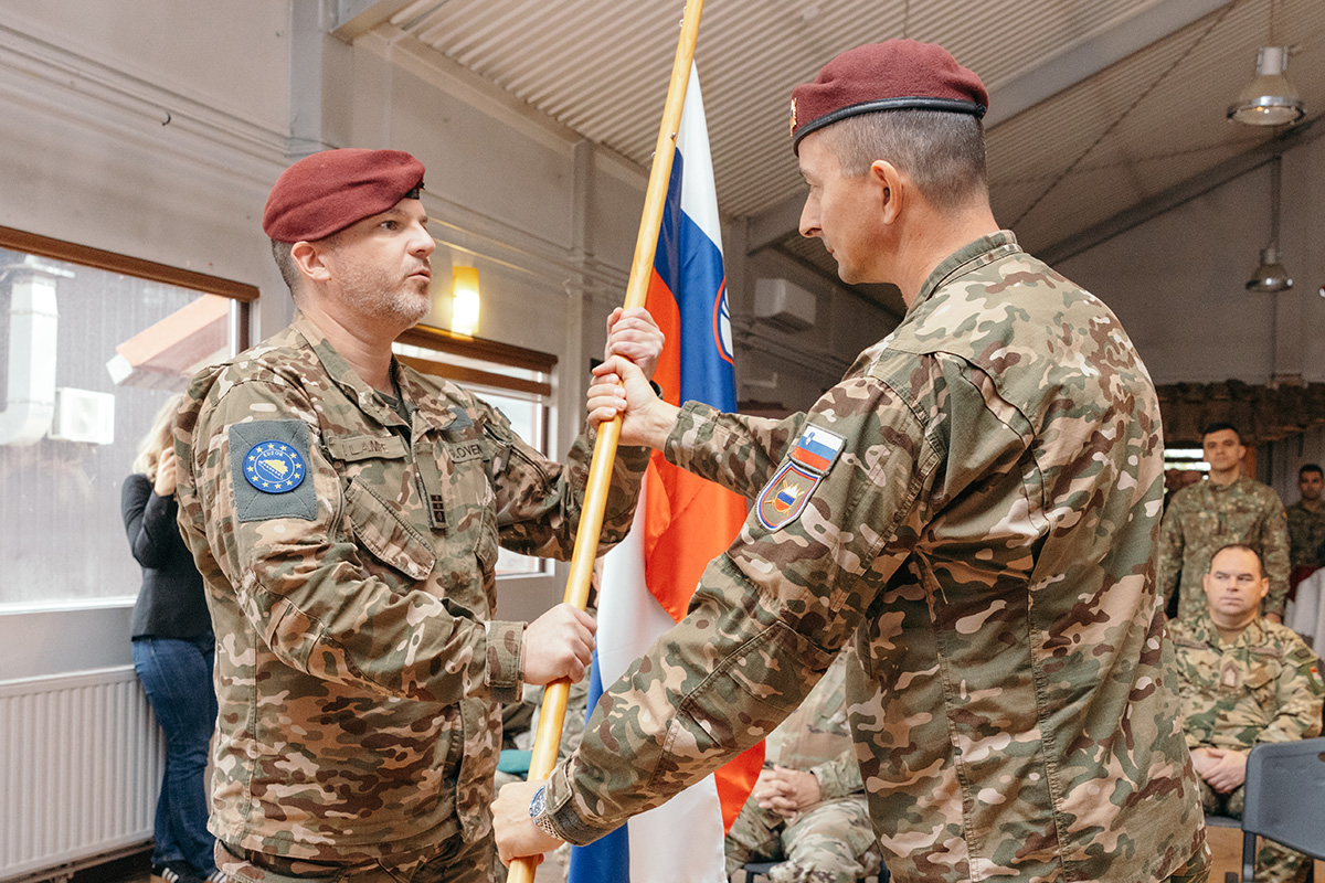 The ceremony marked the formal handover of command from Lieutenant Colonel Ervin Hatunic to Lieutenant Colonel Jure Lampe.