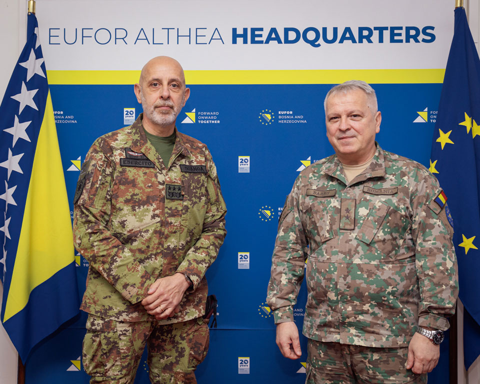 Ovih dana, komandant Snaga Evropske unije u Bosni i Hercegovini generalmajor Florin Marian Barbu i komandant NATO štaba Sarajevo brigadni general Matthew A. Valas u bazi Butmir srdačno su dočekali generalpukovnika Rodolfa Sgangu, načelnika štaba Komande združenih snaga NATO-a u Napulju i načelnika Koordinacijskog elementa Evropske unije.