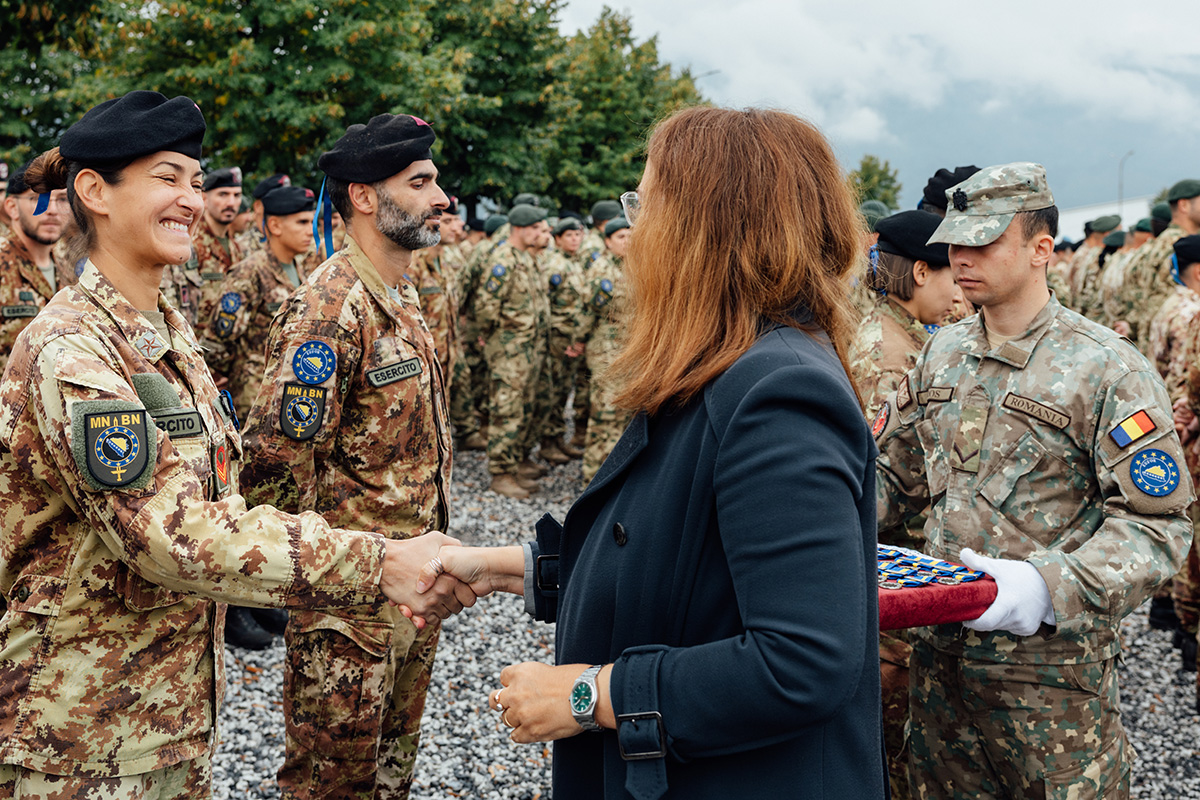 U obilježavanju ovog trenutka ponosa zapovjedniku EUFOR-a general-bojniku Florinu Marianu Barbuu i načelniku stožera EUFOR-a brigadnome generalu Tiboru Szabu pridružili su se Njena Ekselencija Sarah Castelani, veleposlanica Italije u BiH, i Njegova Ekselencija Anton Păcurețu, veleposlanik Rumunjske u BiH.